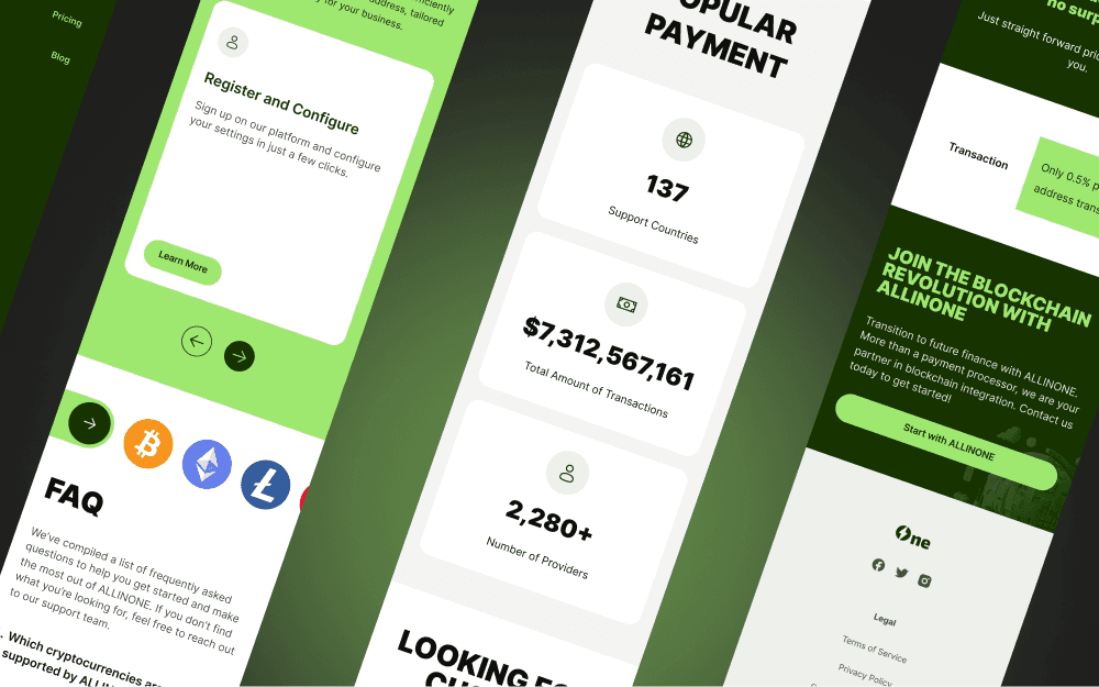 The Allinone platform delivered an easy-to-use interface that made cryptocurrency payments simple and accessible. The platform’s clean, intuitive design, supported by a scalable design system, enhanced the overall user experience and drove user engagement.