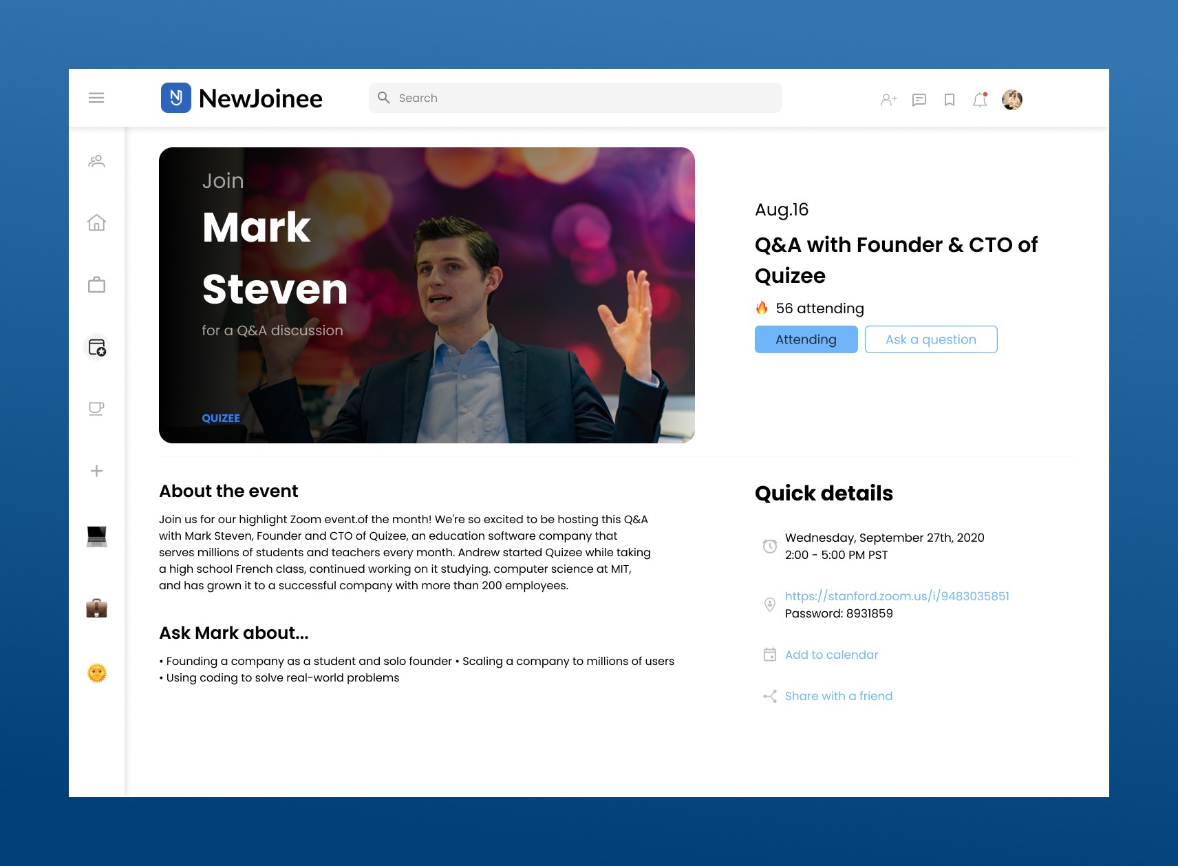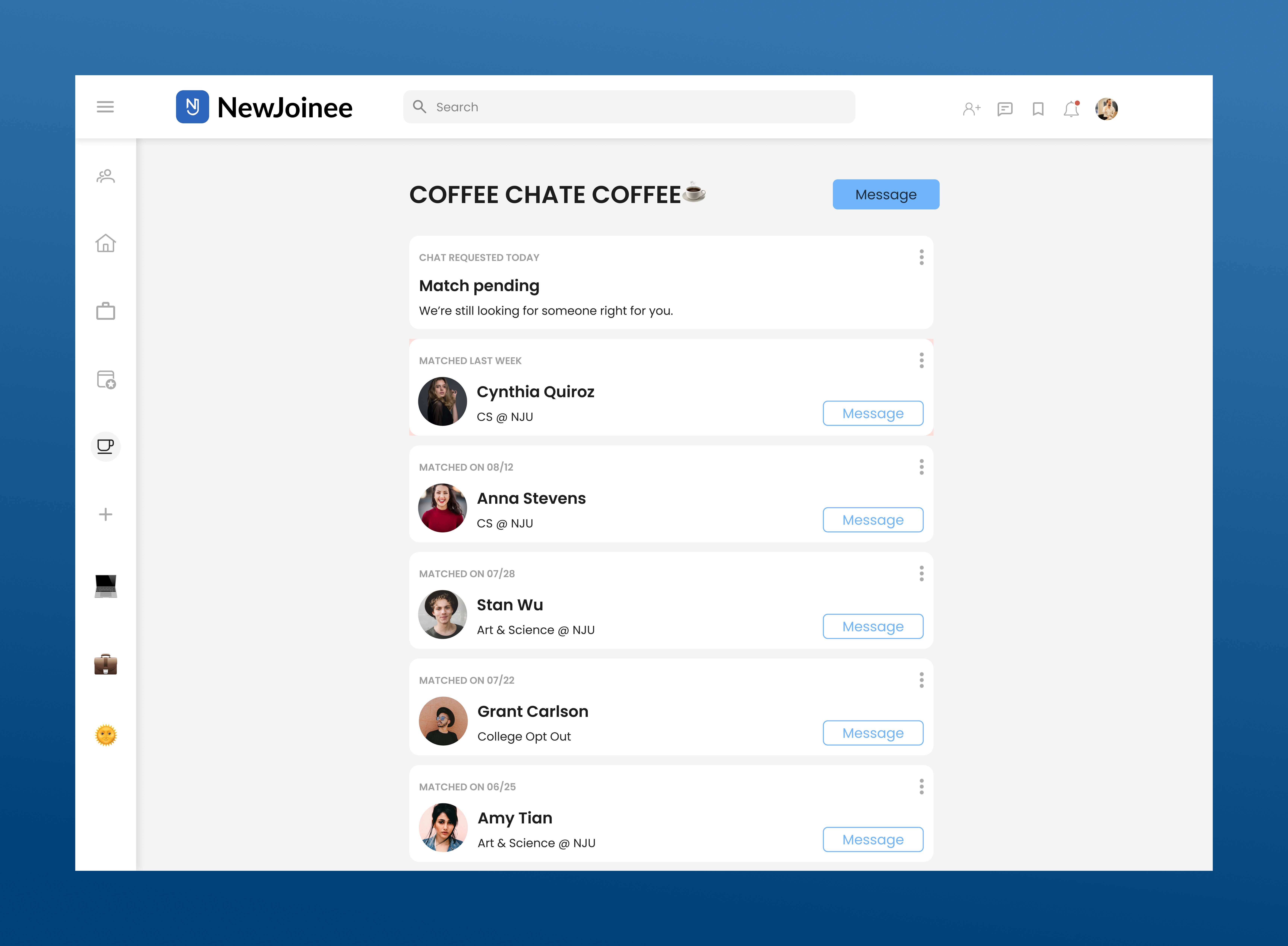 The NewJoinee career platform is designed specifically for college students.