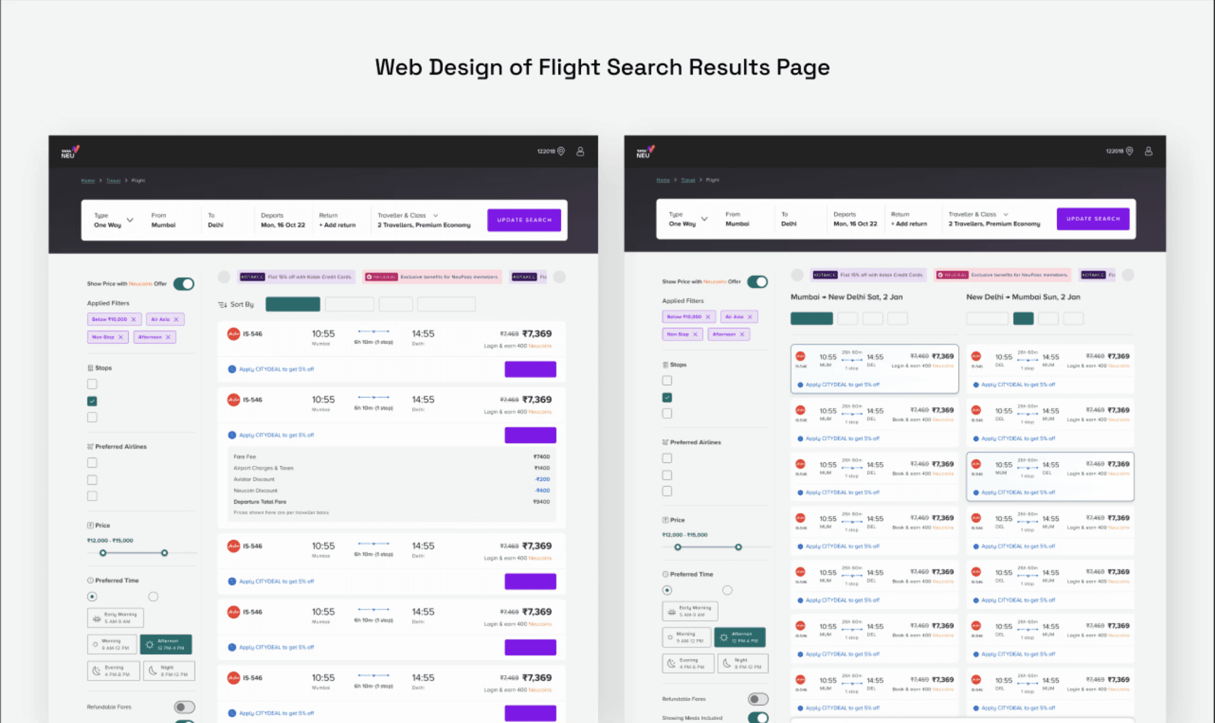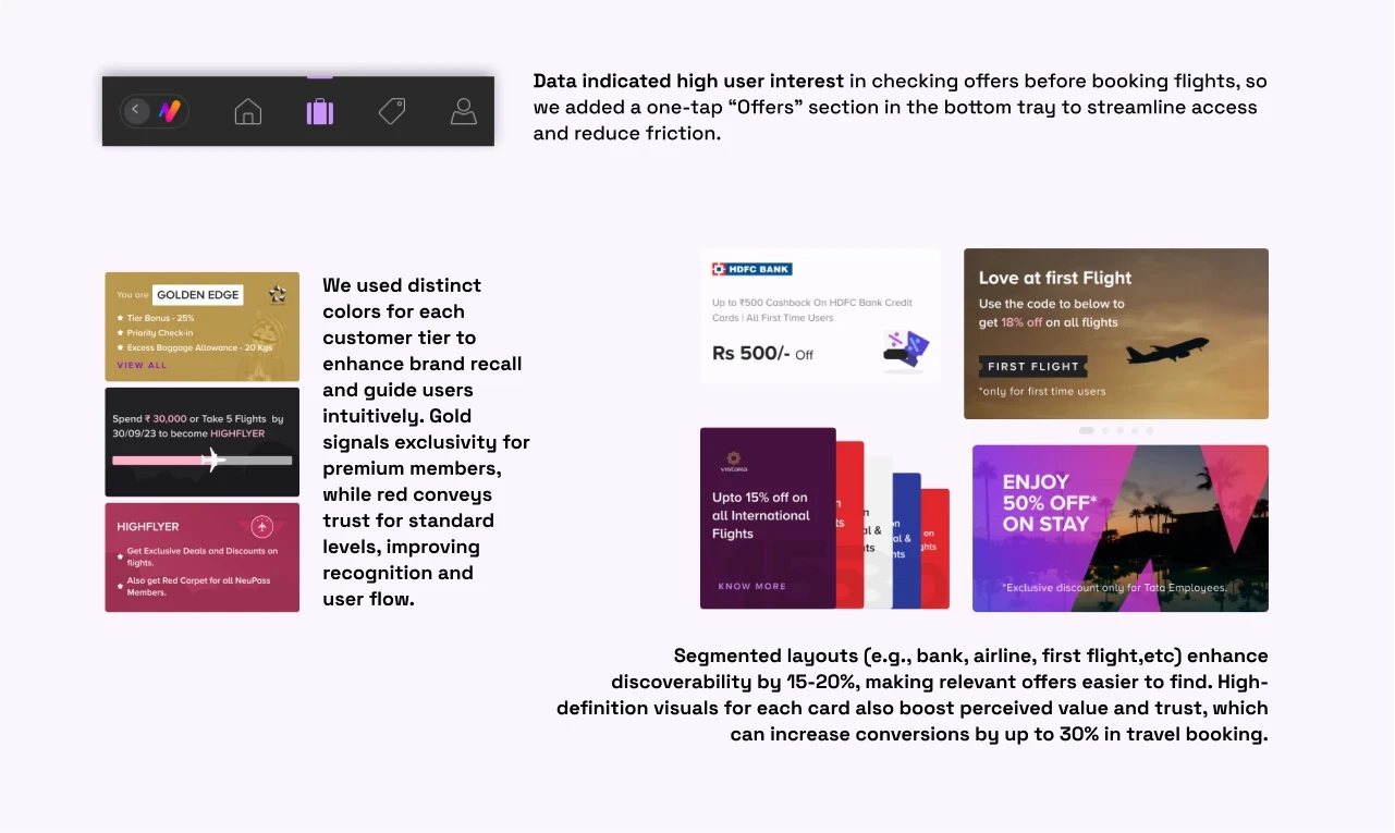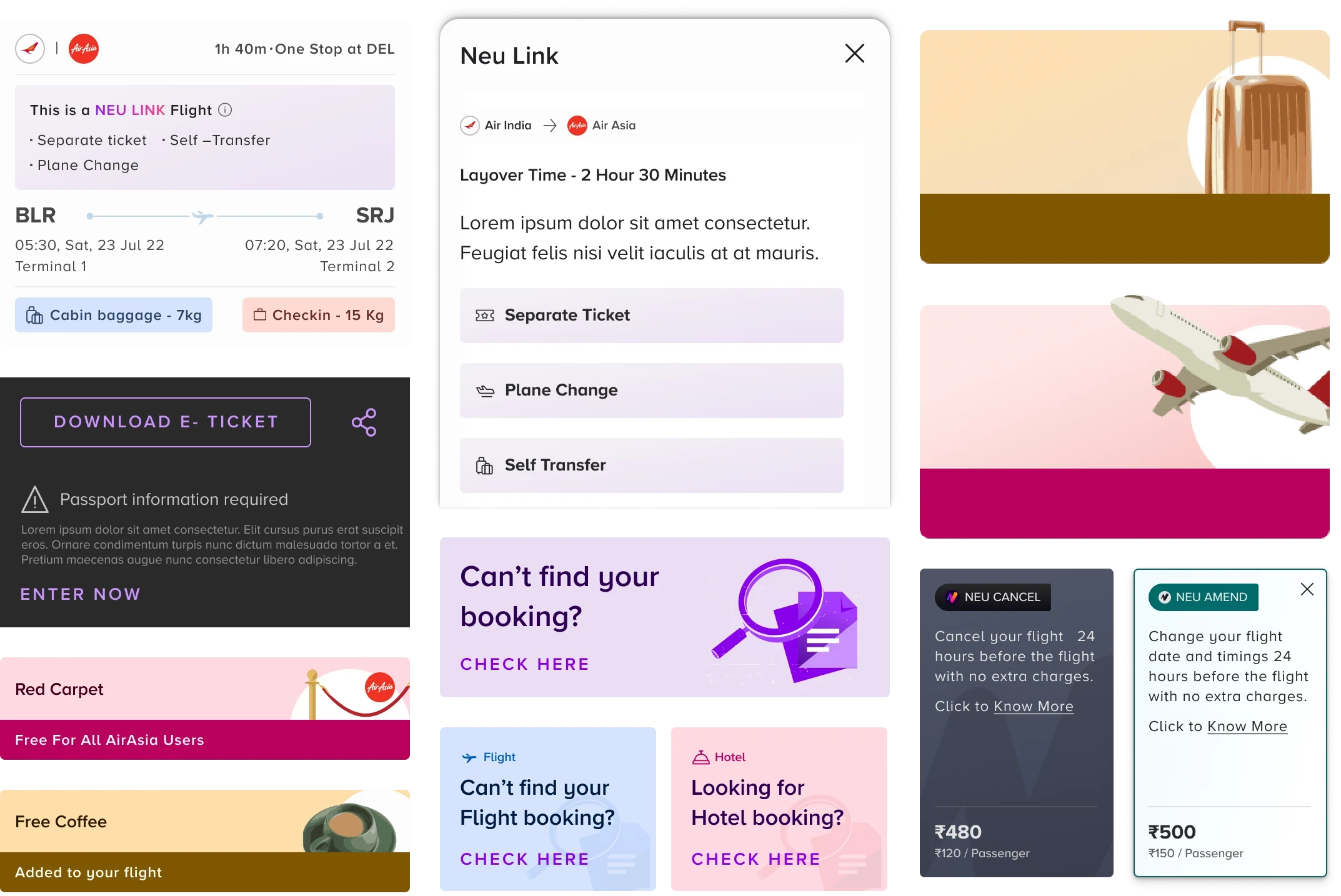 I contributed to TataNeu's End-to End flight booking experience and integrated designs for 35M* Neu Pass rewards members while aiding Product development.
