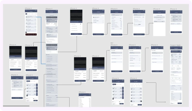 We started by mapping out the entire happy flow of the experience, divided into booking and post-booking phases. It took us around three weeks to complete this stage. We worked quickly to move on to the visual design phase and get things rolling.