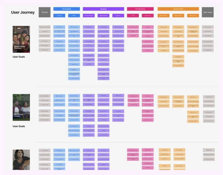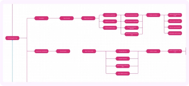 We structured the user journey and information architecture into Primary phases—Precooking, Booking, Post-Booking, and While