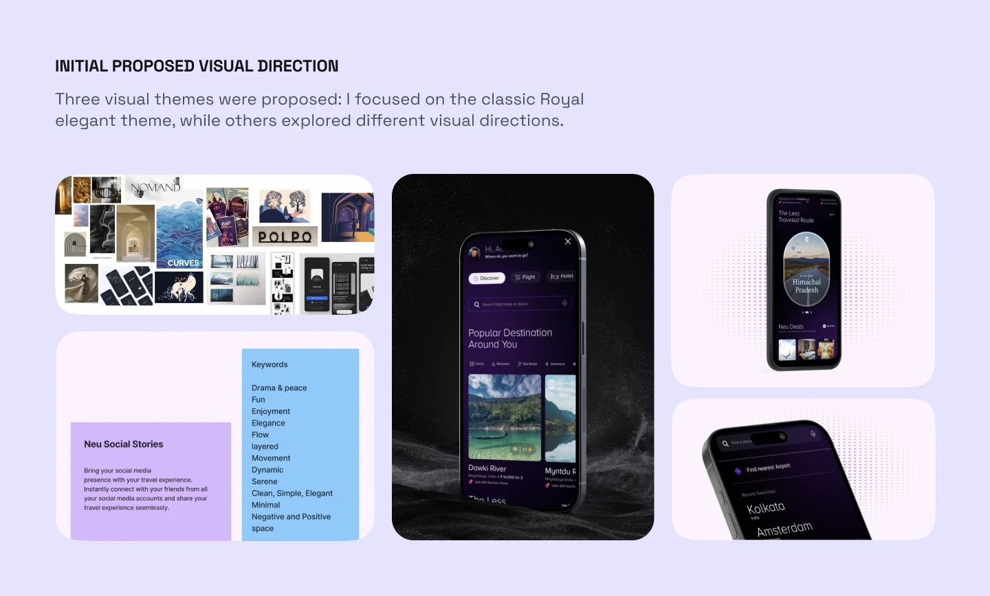 We followed the Tata Digital's design system, using their defined fonts, colors, and icons for our travel experience. Despite the constraints, it was fun to work within boundaries and create a cohesive visual design that fits seamlessly into the larger ecosystem.