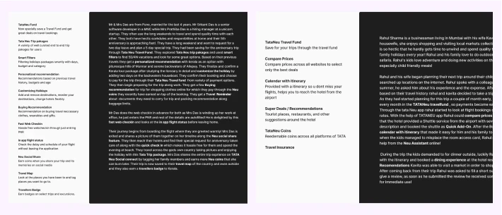 We continued extensiveresearch. This includedanalyzing market reports, understanding diverse Indiancustomer segments, and collaborating with TAA researchers.We held workshops tobrainstorm, debate, and refineinsights on user behaviour,needs, and requirements.