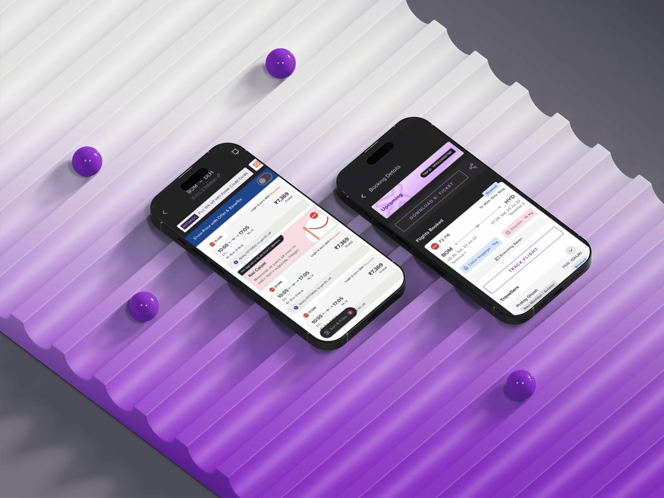 UI Design: I created the visual journey for the entire post-booking flow, and flight search results, and integrated dark/white themes seamlessly. I created illustrations and empty states.