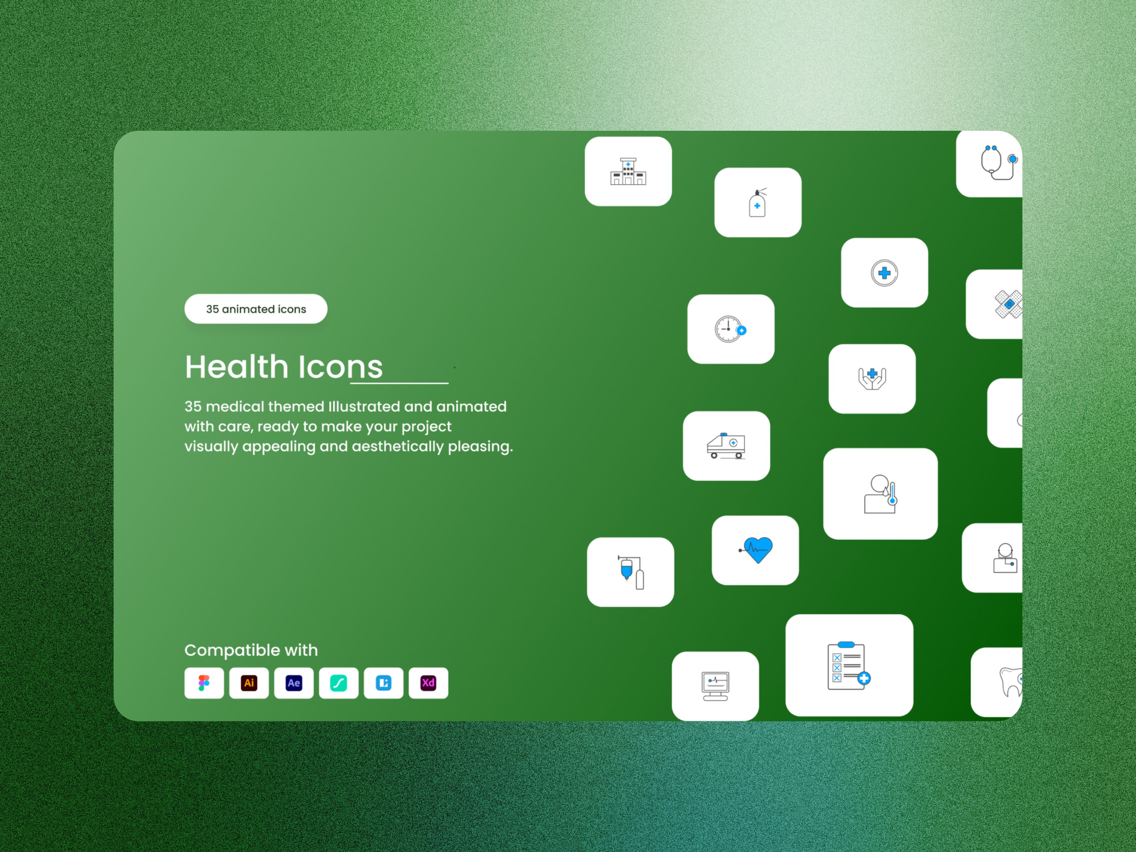 The Health Icons set includes 35 meticulously designed icons, perfect for any health-related project. Whether you're designing for medical, wellness, or healthcare applications, this collection offers versatile icons in multiple formats, including Figma, Sketch, Photoshop, and more. Fully customizable to fit your needs, these icons are ready to enhance your design work with ease. Download now and bring a professional touch to your health-focused designs!